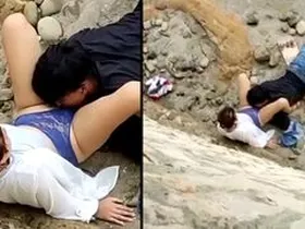 A young man smells his girlfriend’s panties and sucks her Indian pussy outside and gets caught on camera.