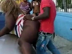 Lesbians in action: Mexican students Priscia and Xiomara in some hot public restroom action.