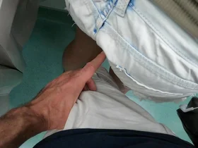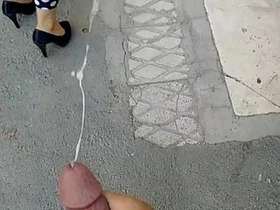 A public agent rips my stockings off and fucks my pussy hard on the outside