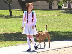 Big boobed redhead teenage girl gets into more and more trouble in public.