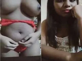 Big Boobs Indian Bhabhi stimulates orgasm with live nude MMS in a strip tease