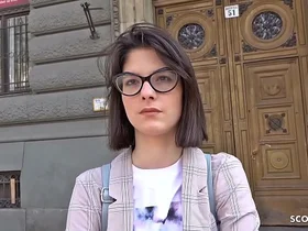 German scout 18-year-old young student Sarah AO gets anally fucked in a real cast after university